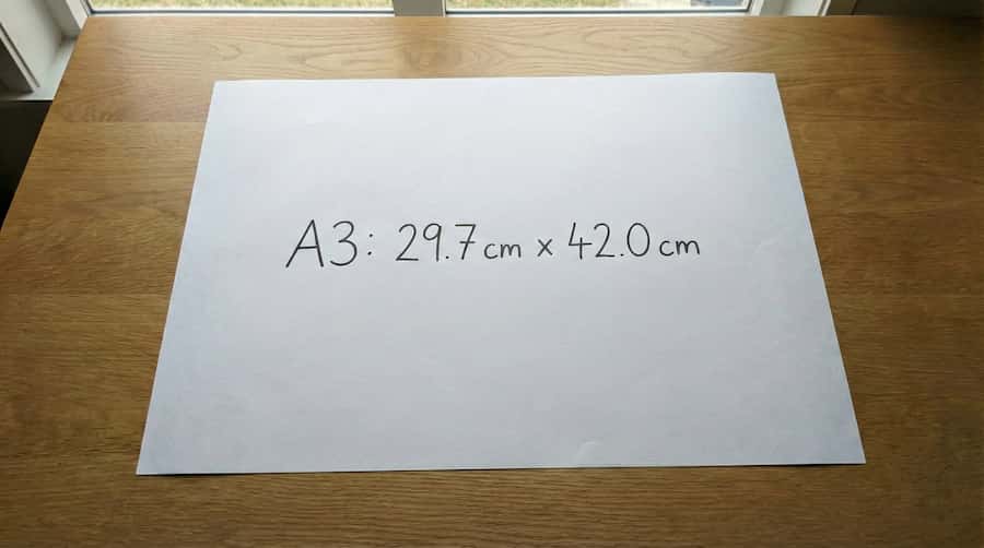 ابعاد: ۲۹.۷ × ۴۲ سانتیمتر (دقیقاً دو برابر A4)