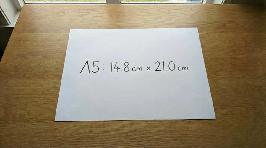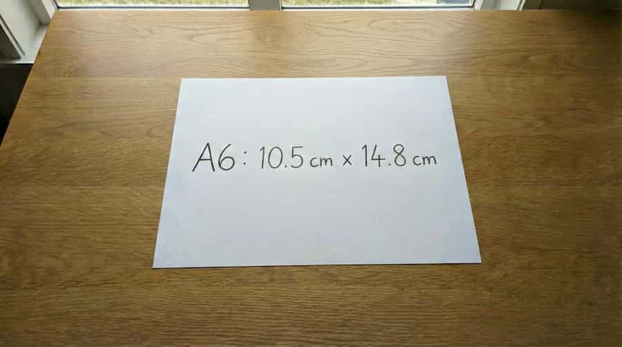 ابعاد A6: ۱۰.۵ × ۱۴.۸ سانتیمتر (کارت پستال استاندارد).