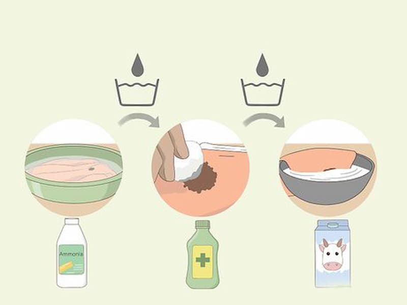 لباس را به مدت ۲ تا ۳ ساعت در یک کاسه شیر قرار دهید.