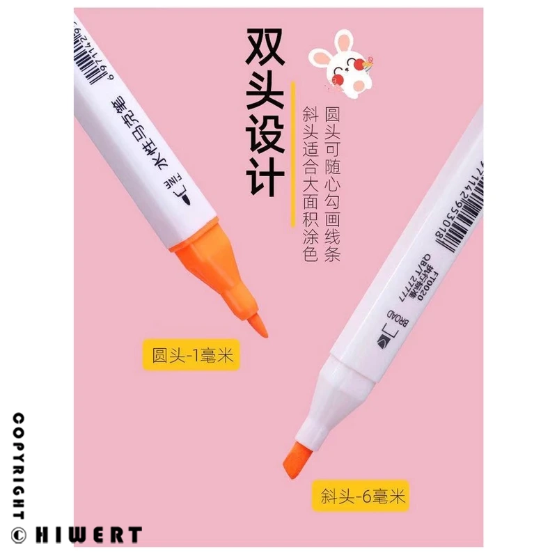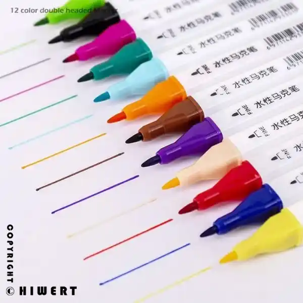 دو ابزار در یک بدنه (Dual-Tip Versatility): هر ماژیک دارای یک نوک نازک (Fine) برای ترسیم خطوط دقیق و جزئیات، و یک نوک پهن (Broad/Brush) برای رنگآمیزی سطوح بزرگ است. این یعنی شما عملاً یک ست ۲۴ عددی در اختیار دارید!