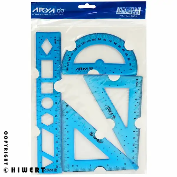 | محتویات | خط کش (۲۰ سانت)، نقاله (۱۸۰ درجه)، گونیا (۴۵ درجه)، گونیا (۶۰ درجه) |