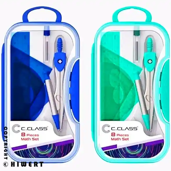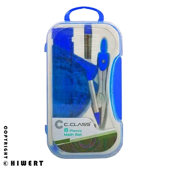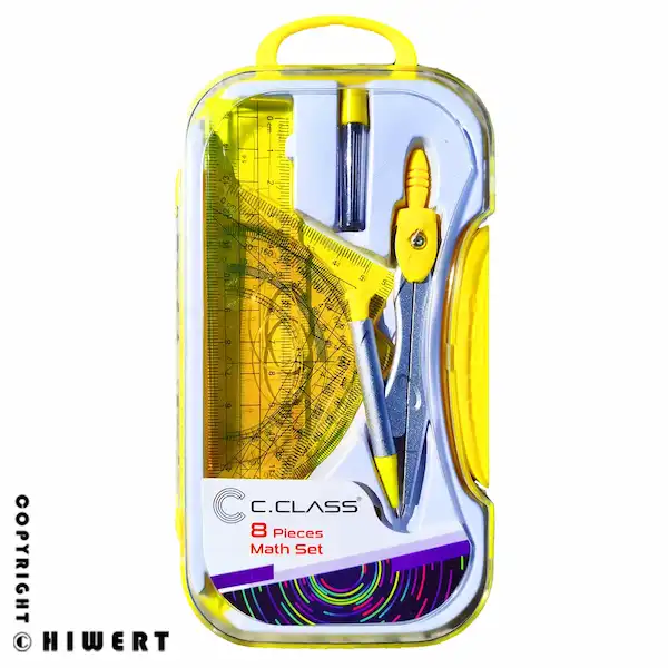 | محتویات | پرگار (فلزی)، نوک یدک، خط کش (۱۵ سانت)، نقاله (۱۸۰ درجه)، گونیا (۴۵ درجه)، گونیا (۶۰ درجه)، پاککن |