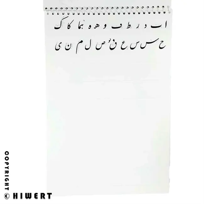 صحافی سیمی (راحتی در استفاده): هنر خوشنویسی نیازمند یک سطح کار کاملاً صاف (۱۸۰ درجه) است. صحافی سیمی (فنر دوبل) این دفتر، بهترین گزینه برای تمرین است زیرا:
