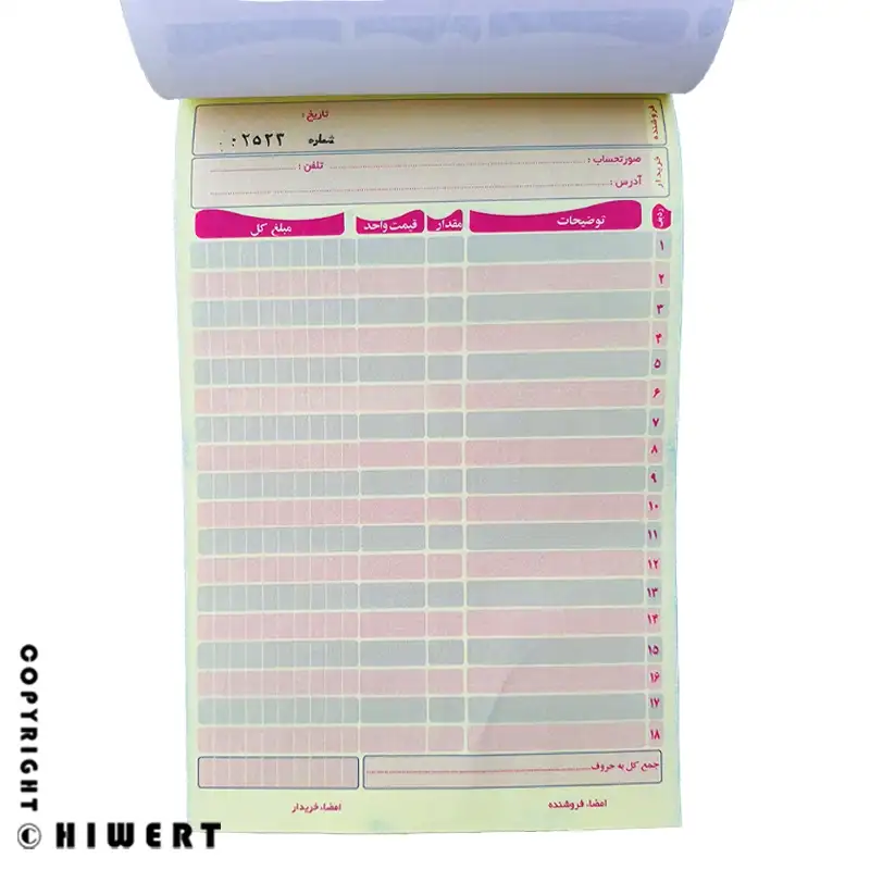 | نوع محصول | فاکتور فروش دستی (سایز بزرگ) |