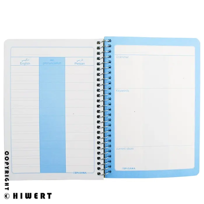 این محصول که توسط برند معتبر "اسپادانا" (Espadana) تولید شده، فراتر از یک دفترچه یادداشت معمولی است؛ صفحات رویی آن دارای سه ستون مجزا برای نوشتن "لغت انگلیسی"، "تلفظ (فونتیک)" و "معنی فارسی" است که فرآیند حفظ کردن را سیستماتیک میکند.