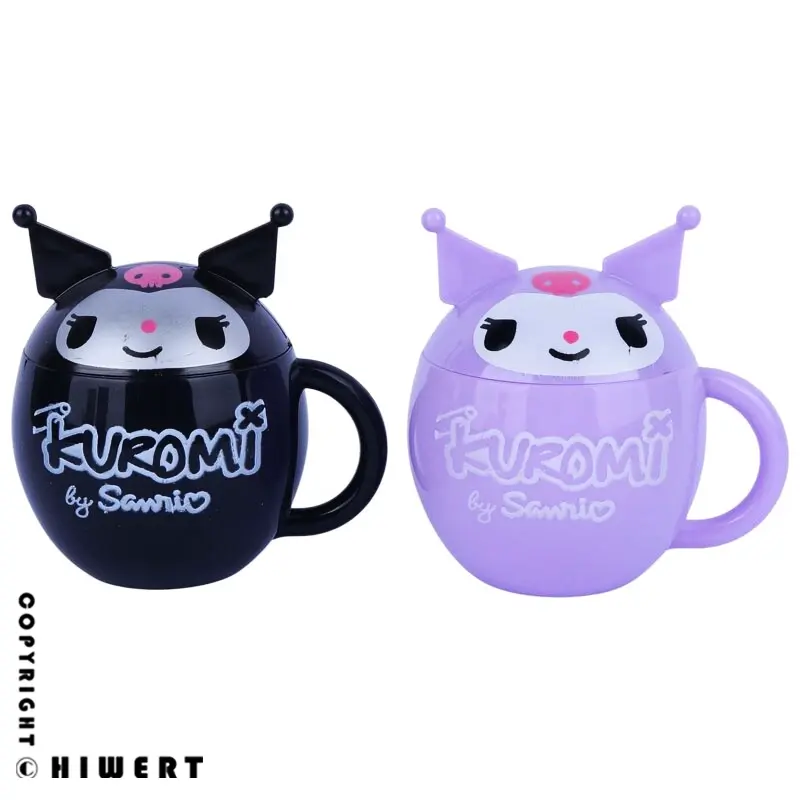 ماگ درب دار فانتزی طرح کرومی (Kuromi)، جذاب ترین همراه شما برای نوشیدن چای، شیرکاکائو یا آبمیوه است. این لیوان که با الهام از شخصیت محبوب و پرطرفدار Kuromi (از دنیای Sanrio) طراحی شده، با ظاهری گرد و بامزه و رنگ های شارپ (بنفش و مشکی)، دل هر بیننده ای را میبرد.