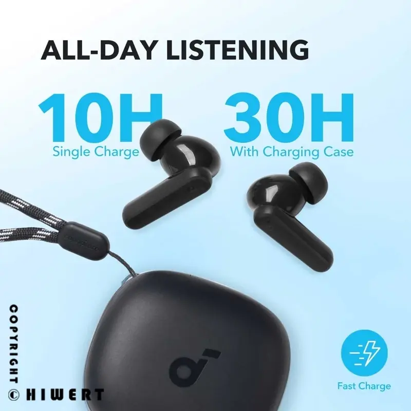 با هر بار شارژ کامل، میتونید تا 10 ساعت از Soundcore R50i استفاده کنید. همچنین، با استفاده از کیس شارژ، میتونید تا 30 ساعت به موسیقی گوش کنید. شارژ سریع هم به شما این امکان رو میده که با فقط 10 دقیقه شارژ، تا 2 ساعت به موسیقی گوش کنید.