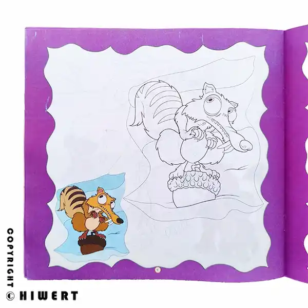 داستان سازی: از کودک بخواهید برای صفحهای که رنگ میکند، یک داستان کوتاه بسازد. مثلاً: "اسکرات داره کجا میره؟ فکر میکنی بتونه بلوط رو بگیره؟"