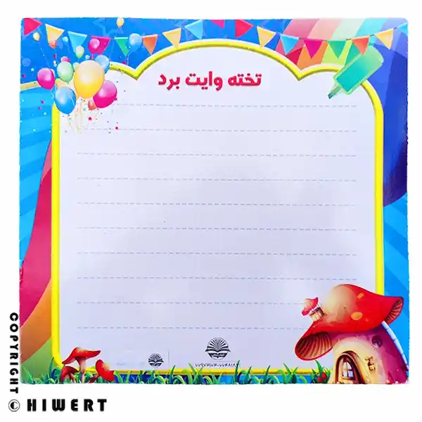 وایتبرد جادویی: جلد پشتی کتاب با پوشش سلفونی خاصی تولید شده که دقیقاً مثل تخته وایتبرد عمل میکند. کودک میتواند تمرینات نوشتاری یا نقاشیهای آزاد خود را روی آن انجام دهد و پاک کند.