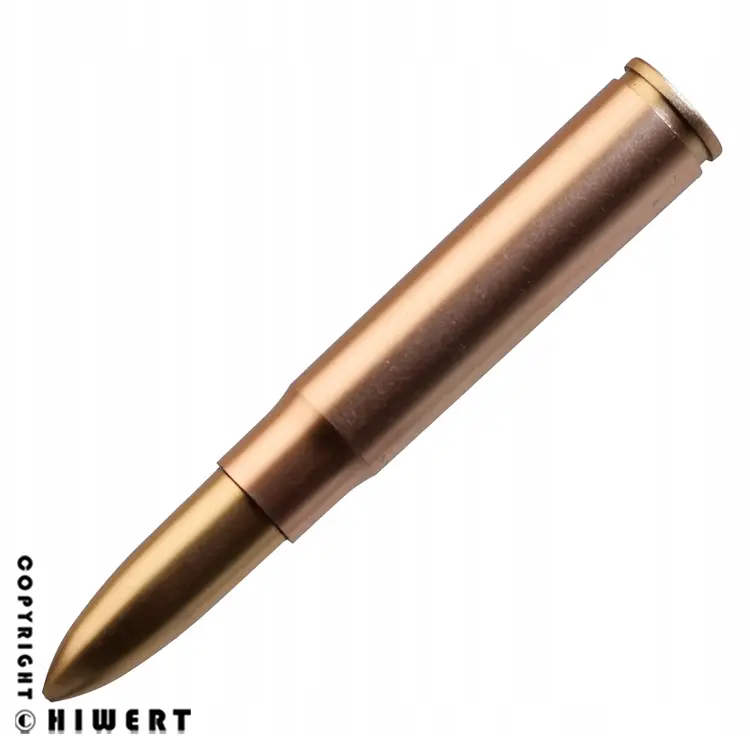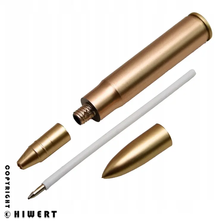 اولین چیزی که در مواجهه با این خودکار جلب توجه میکند، شباهت بینظیر آن به یک فشنگ جنگی واقعی (مثل کالیبر ۵۰ یا کلاشینکف) است. بدنه محصول با رنگهای طلایی و مسی (Metallic Finish) آبکاری شده است که درخشش فلز برنج را شبیهسازی میکند.
