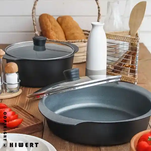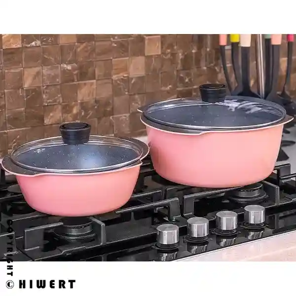یک ویژگی طلایی! از آنجایی که دسته های این سرویس از جنس بدنه (آلومینیوم دایکاست) هستند و هیچ قطعه پلاستیکی در بدنه اصلی وجود ندارد، شما میتوانید با خیالی آسوده قابلمه و تابه (بدون درب شیشهای) را داخل فر قرار دهید. این ویژگی برای پخت انواع تهیچین، مرغ بریان و خوراکهایی که نیاز به پخت در فر دارند، حیاتی است.